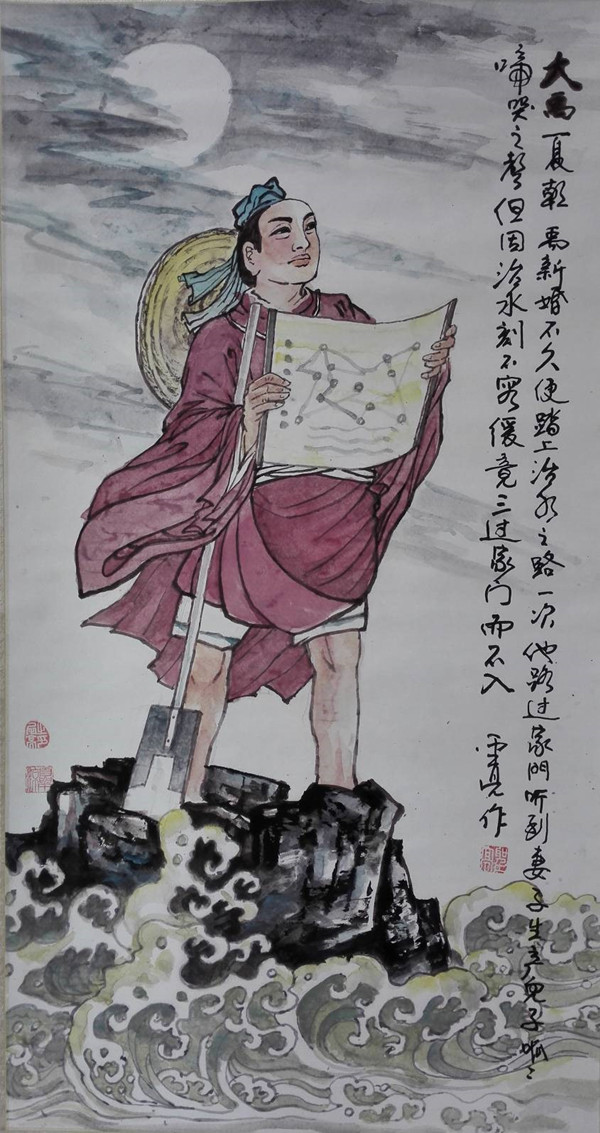复后氏首领,黄帝的玄孙。帝尧时,因中原洪水泛滥成灾,久治难息,百姓愁苦不堪,帝尧即命大禹为司空,治理洪水。大禹受命后,总结过去治水的教训,改革以往治水的思路方法,为治水费尽脑筋。他新婚不久便踏上治水之路,翻山越岭,淌河过川,走遍各地。率领百姓风餐露宿,不辞劳苦,也不敢休息。他曾三过家门而不入,听到妻子生产,儿子呱呱落地的声音,也顾不上进家门看上一眼。?