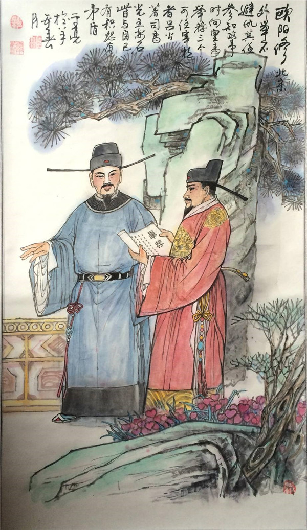 北宋名臣。欧阳修为官光明磊落,廉洁奉公。他任参知政事时,皇帝要他举荐3个可任宰相的人。他外举不避仇,举荐了吕公著、司马光、王安石,而这三个人或与他政见不一,或曾导致他下狱。但欧阳修以国事为重,并不计较个人恩怨,世人无不敬服。?